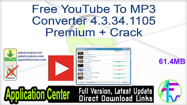 Free Youtube To Mp3 Converter 4 3 34 1105 Premium Crack Application Full Version - Secondly, it is one of the fastest youtube converter.
