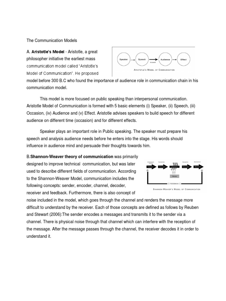 Communication Model Human Performance Technology Manual - The main models of communication are can be split into three categories:
