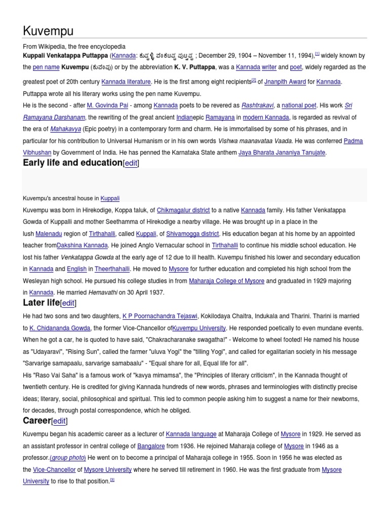 Kuvempu Wikiwand - The employment information and management.
